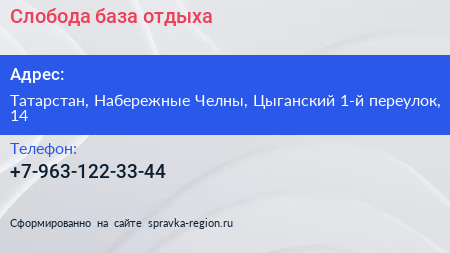 Слобода, база отдыха по адресу Татарстан, Набережные Челны, Цыганский 1-й переулок, 14 в дальнейшем Организация, размещена в следующих категориях: