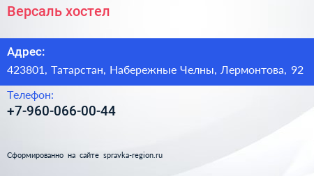 Версаль, хостел по адресу 423801, Татарстан, Набережные Челны, Лермонтова, 92 в дальнейшем Организация, размещена в следующих категориях: