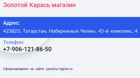 Золотой Карась, магазин по адресу 423823, Татарстан, Набережные Челны, 45-й комплекс, 4 в дальнейшем Организация, размещена в следующих категориях: