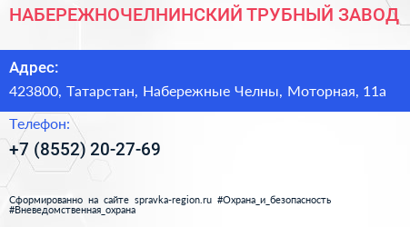 НАБЕРЕЖНОЧЕЛНИНСКИЙ ТРУБНЫЙ ЗАВОД по адресу 423800, Татарстан, Набережные Челны, Моторная, 11а в дальнейшем Организация, размещена в следующих категориях: