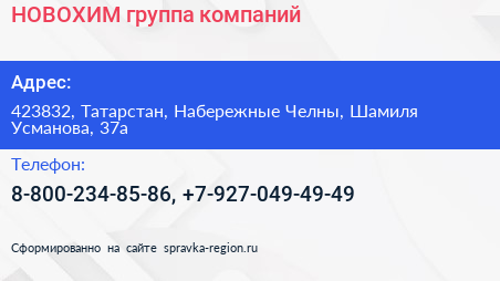 НОВОХИМ, группа компаний по адресу 423832, Татарстан, Набережные Челны, Шамиля Усманова, 37а в дальнейшем Организация, размещена в следующих категориях: