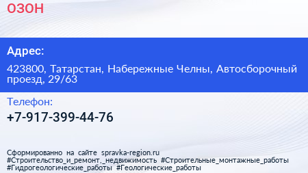 ОЗОН по адресу 423800, Татарстан, Набережные Челны, Автосборочный проезд, 29/63 в дальнейшем Организация, размещена в следующих категориях: