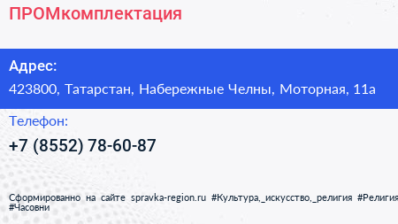 ПРОМкомплектация по адресу 423800, Татарстан, Набережные Челны, Моторная, 11а в дальнейшем Организация, размещена в следующих категориях: