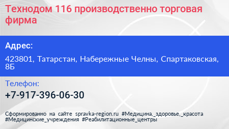 Технодом 116, производственно-торговая фирма по адресу 423801, Татарстан, Набережные Челны, Спартаковская, 8Б в дальнейшем Организация, размещена в следующих категориях: