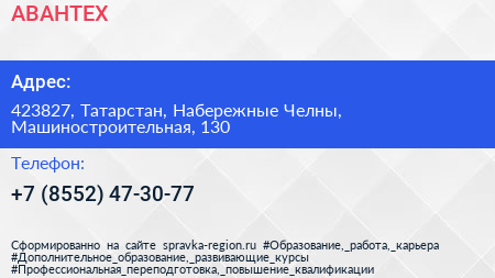 АВАНТЕХ по адресу 423827, Татарстан, Набережные Челны, Машиностроительная, 130 в дальнейшем Организация, размещена в следующих категориях: