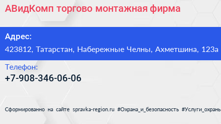 АВидКомп, торгово-монтажная фирма по адресу 423812, Татарстан, Набережные Челны, Ахметшина, 123а в дальнейшем Организация, размещена в следующих категориях: