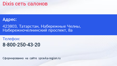 Dixis, сеть салонов по адресу 423803, Татарстан, Набережные Челны, Набережночелнинский проспект, 8а в дальнейшем Организация, размещена в следующих категориях: