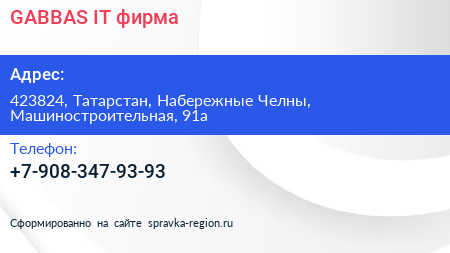 GABBAS IT, фирма по адресу 423824, Татарстан, Набережные Челны, Машиностроительная, 91а в дальнейшем Организация, размещена в следующих категориях: