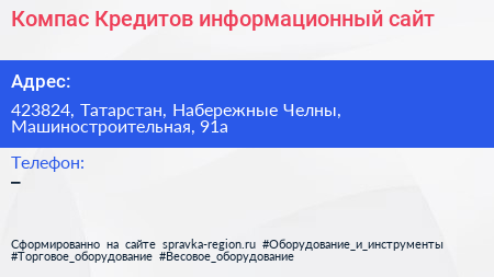 Компас Кредитов, информационный сайт по адресу 423824, Татарстан, Набережные Челны, Машиностроительная, 91а в дальнейшем Организация, размещена в следующих категориях: