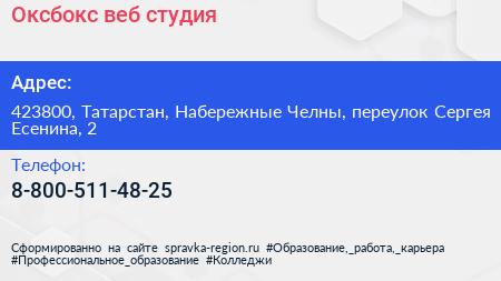 Оксбокс, веб-студия по адресу 423800, Татарстан, Набережные Челны, переулок Сергея Есенина, 2 в дальнейшем Организация, размещена в следующих категориях: