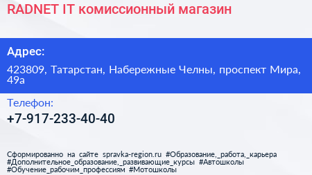 RADNET-IT, комиссионный магазин по адресу 423809, Татарстан, Набережные Челны, проспект Мира, 49а в дальнейшем Организация, размещена в следующих категориях: