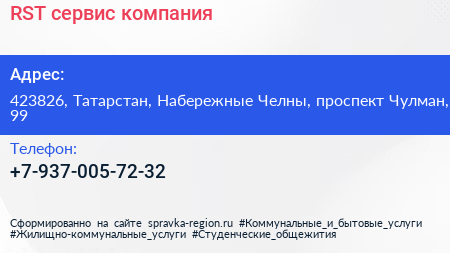 RST-сервис, компания по адресу 423826, Татарстан, Набережные Челны, проспект Чулман, 99 в дальнейшем Организация, размещена в следующих категориях: