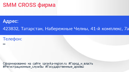 SMM.CROSS, фирма по адресу 423832, Татарстан, Набережные Челны, 41-й комплекс, 7а в дальнейшем Организация, размещена в следующих категориях: