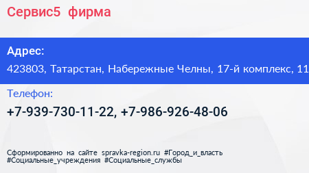 Сервис5+, фирма по адресу 423803, Татарстан, Набережные Челны, 17-й комплекс, 11 в дальнейшем Организация, размещена в следующих категориях: