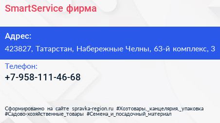 SmartService, фирма по адресу 423827, Татарстан, Набережные Челны, 63-й комплекс, 3 в дальнейшем Организация, размещена в следующих категориях: