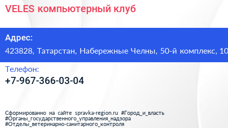 VELES, компьютерный клуб по адресу 423828, Татарстан, Набережные Челны, 50-й комплекс, 10 в дальнейшем Организация, размещена в следующих категориях: