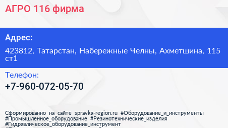 АГРО-116, фирма по адресу 423812, Татарстан, Набережные Челны, Ахметшина, 115 ст1 в дальнейшем Организация, размещена в следующих категориях: