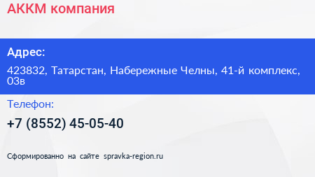 АККМ, компания по адресу 423832, Татарстан, Набережные Челны, 41-й комплекс, 03в в дальнейшем Организация, размещена в следующих категориях: