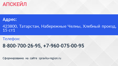 АПСКЕЙЛ по адресу 423800, Татарстан, Набережные Челны, Хлебный проезд, 15 ст1 в дальнейшем Организация, размещена в следующих категориях: