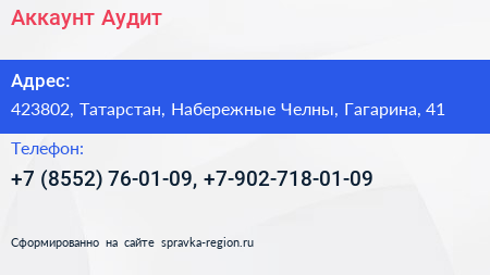 Аккаунт-Аудит по адресу 423802, Татарстан, Набережные Челны, Гагарина, 41 в дальнейшем Организация, размещена в следующих категориях: