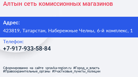 Алтын, сеть комиссионных магазинов по адресу 423819, Татарстан, Набережные Челны, 6-й комплекс, 1 в дальнейшем Организация, размещена в следующих категориях: