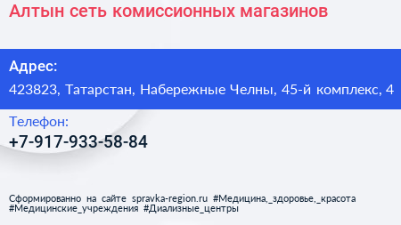 Алтын, сеть комиссионных магазинов по адресу 423823, Татарстан, Набережные Челны, 45-й комплекс, 4 в дальнейшем Организация, размещена в следующих категориях: