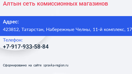 Алтын, сеть комиссионных магазинов по адресу 423812, Татарстан, Набережные Челны, 11-й комплекс, 17 в дальнейшем Организация, размещена в следующих категориях: