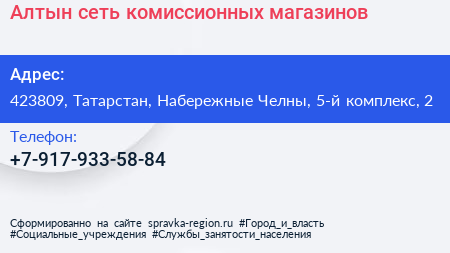 Алтын, сеть комиссионных магазинов по адресу 423809, Татарстан, Набережные Челны, 5-й комплекс, 2 в дальнейшем Организация, размещена в следующих категориях: