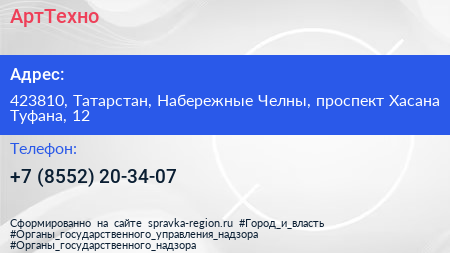 АртТехно по адресу 423810, Татарстан, Набережные Челны, проспект Хасана Туфана, 12 в дальнейшем Организация, размещена в следующих категориях: