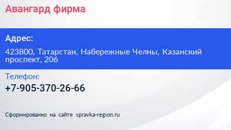 Авангард, фирма по адресу 423800, Татарстан, Набережные Челны, Казанский проспект, 206 в дальнейшем Организация, размещена в следующих категориях: