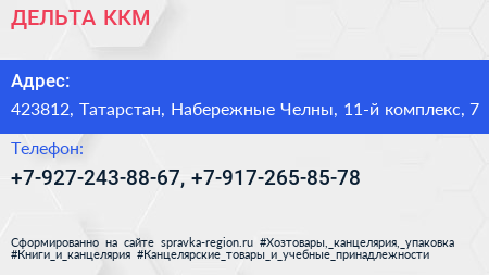 ДЕЛЬТА ККМ по адресу 423812, Татарстан, Набережные Челны, 11-й комплекс, 7 в дальнейшем Организация, размещена в следующих категориях: