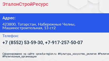ЭталонСтройРесурс по адресу 423800, Татарстан, Набережные Челны, Машиностроительная, 13 ст2 в дальнейшем Организация, размещена в следующих категориях: