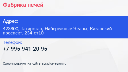 Фабрика печей по адресу 423800, Татарстан, Набережные Челны, Казанский проспект, 234 ст10 в дальнейшем Организация, размещена в следующих категориях: