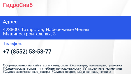 ГидроСнаб по адресу 423800, Татарстан, Набережные Челны, Машиностроительная, 3 в дальнейшем Организация, размещена в следующих категориях: