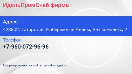 ИдельПромСнаб, фирма по адресу 423802, Татарстан, Набережные Челны, 9-й комплекс, 2 в дальнейшем Организация, размещена в следующих категориях: