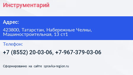 Инструментарий по адресу 423800, Татарстан, Набережные Челны, Машиностроительная, 13 ст1 в дальнейшем Организация, размещена в следующих категориях: