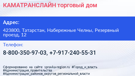 КАМАТРАНСЛАЙН, торговый дом по адресу 423800, Татарстан, Набережные Челны, Резервный проезд, 12 в дальнейшем Организация, размещена в следующих категориях: