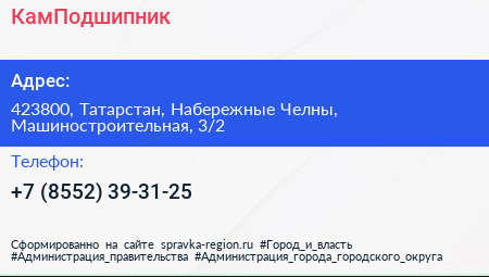 КамПодшипник по адресу 423800, Татарстан, Набережные Челны, Машиностроительная, 3/2 в дальнейшем Организация, размещена в следующих категориях: