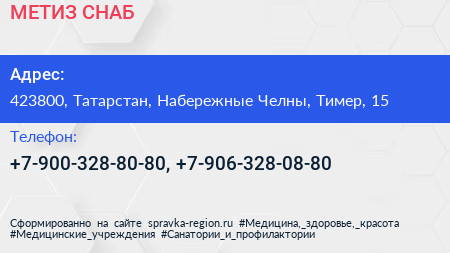 МЕТИЗ СНАБ по адресу 423800, Татарстан, Набережные Челны, Тимер, 15 в дальнейшем Организация, размещена в следующих категориях: