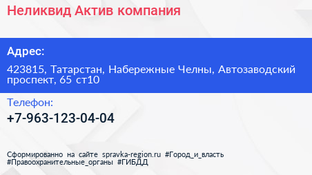 Неликвид Актив, компания по адресу 423815, Татарстан, Набережные Челны, Автозаводский проспект, 65 ст10 в дальнейшем Организация, размещена в следующих категориях: