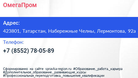 ОмегаПром по адресу 423801, Татарстан, Набережные Челны, Лермонтова, 92а в дальнейшем Организация, размещена в следующих категориях: