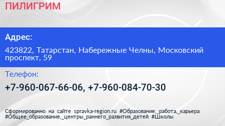 ПИЛИГРИМ по адресу 423822, Татарстан, Набережные Челны, Московский проспект, 59 в дальнейшем Организация, размещена в следующих категориях: