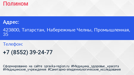 Полином по адресу 423800, Татарстан, Набережные Челны, Промышленная, 35 в дальнейшем Организация, размещена в следующих категориях: