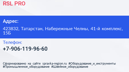 RSL PRO по адресу 423832, Татарстан, Набережные Челны, 41-й комплекс, 15Б в дальнейшем Организация, размещена в следующих категориях: