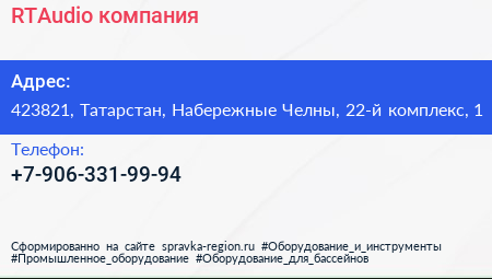 RTAudio, компания по адресу 423821, Татарстан, Набережные Челны, 22-й комплекс, 1 в дальнейшем Организация, размещена в следующих категориях: