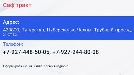 Саф-тракт по адресу 423800, Татарстан, Набережные Челны, Трубный проезд, 3 ст13 в дальнейшем Организация, размещена в следующих категориях: