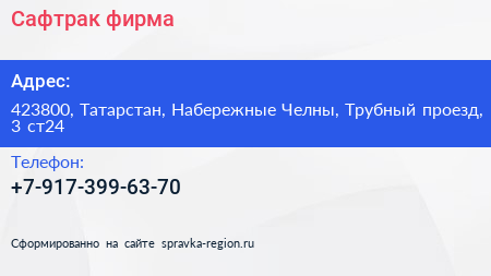Сафтрак, фирма по адресу 423800, Татарстан, Набережные Челны, Трубный проезд, 3 ст24 в дальнейшем Организация, размещена в следующих категориях: