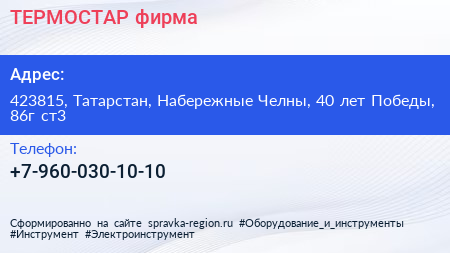 ТЕРМОСТАР, фирма по адресу 423815, Татарстан, Набережные Челны, 40 лет Победы, 86г ст3 в дальнейшем Организация, размещена в следующих категориях: