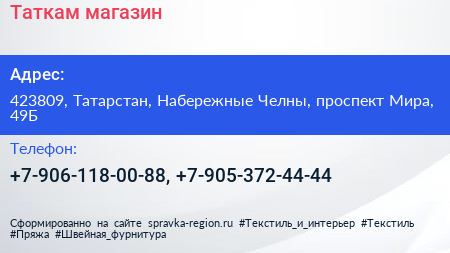 Таткам, магазин по адресу 423809, Татарстан, Набережные Челны, проспект Мира, 49Б в дальнейшем Организация, размещена в следующих категориях: