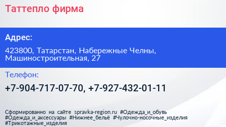 Таттепло, фирма по адресу 423800, Татарстан, Набережные Челны, Машиностроительная, 27 в дальнейшем Организация, размещена в следующих категориях: